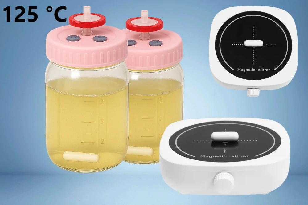 - 2x Kompletní sada sklenice Mason Jars 450ml s víčkem vybaveným injekčnímy porty a mikrofiltrem + magnetické míchadlo. Další kompletní sklenice můžete dokoupit v našem obchodě zde: Sklenice + víčko Mason Jars